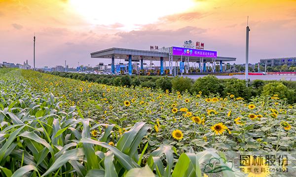 在南側送客區(qū)打造特色景觀農(nóng)業(yè)區(qū),通過地形處理和土壤改良,采用堆坡種植,以背景、前景和蔬菜花鏡三景融合的農(nóng)業(yè)種植造綠方式,創(chuàng)造性地將入城口和景觀農(nóng)業(yè)造景融合,在2.3萬平方米的區(qū)域里,描繪出春天花開蝶舞紛飛、秋日豐收遍地金黃的田園風光大美畫卷。